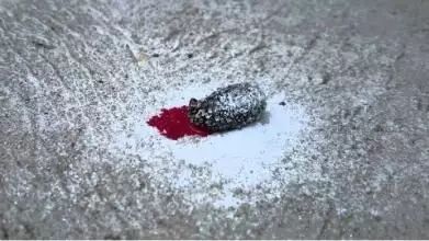 一只刚吸饱血的蚂蝗,在食盐作用下,身体爆裂而亡