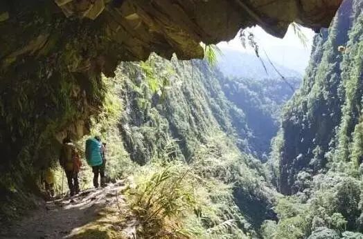 栈道山顶常年化雪融水,道路湿滑,塌方、落石频发,需小心谨慎,认真观察通过