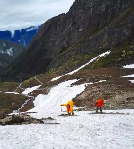 过此处,队友野草一不小心,登山杖掉进激流,人幸好有惊无险