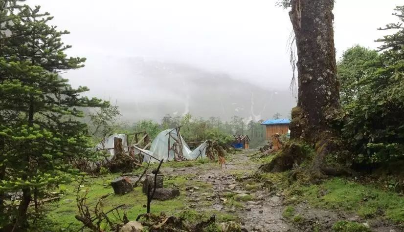 衣服鞋子全湿,拉格海拔超过三千米,温度大约10度,很冷