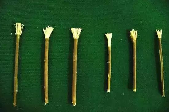 首先把杨柳枝泡在水里,刷牙的时候用牙齿咬开,杨柳枝里面的纤维就会出来,像细小的木梳齿。
