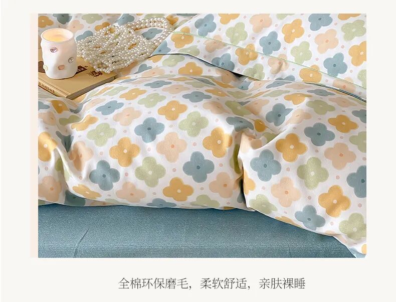 环保纯棉磨毛四件套,双面设计给你带来不同的视觉享受,遇见不一样的你,解锁不一样的好心情。A版时尚花型,美丽大方;B版清新点缀,优雅整洁。
