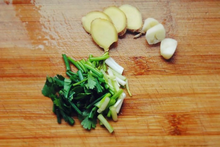 4、葱花、姜片、蒜末备好;