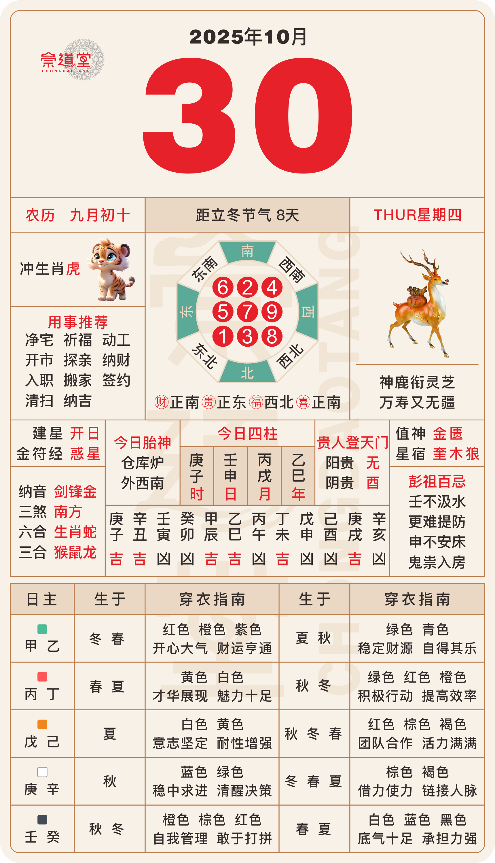 2025年10月30日 农历九月初十 壬申日 冲虎