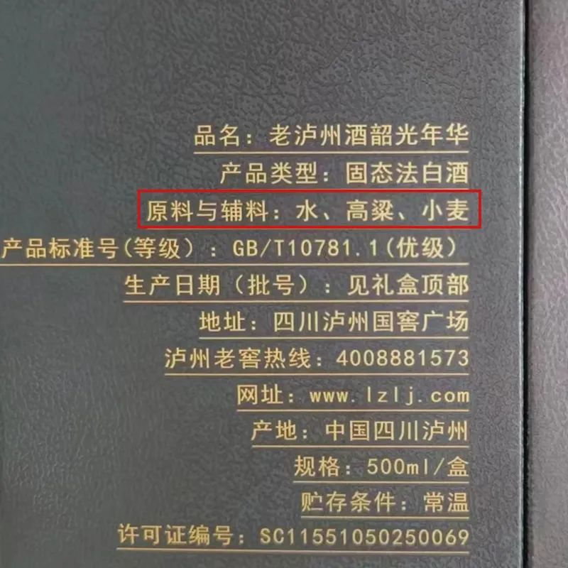 这款酒的原料只有高粱、小麦和水,没有其他添加物。