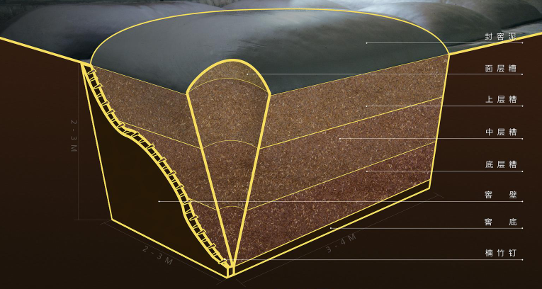 糟醅在窖池中年复一年循环发酵,这样婉转悠久的发酵年份使得窖泥中的微生物不断富集,随着窖池的窖龄越大,酿出的酒风味也越足。