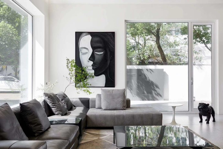 在探索构筑家的过程中,不固化风格上的情绪认知,再定义、重架构。整个客厅的色彩以黑白为主。Reno真皮组合沙发作为客厅主体,舒适的坐感与工艺提升整体的质感品味。Chick 茶几利落简洁,与Play边几、艺术摆件装饰,共同营造宁静优雅的空间氛围,让整个空间更加灵动,诠释温暖而宁静的极简主义。