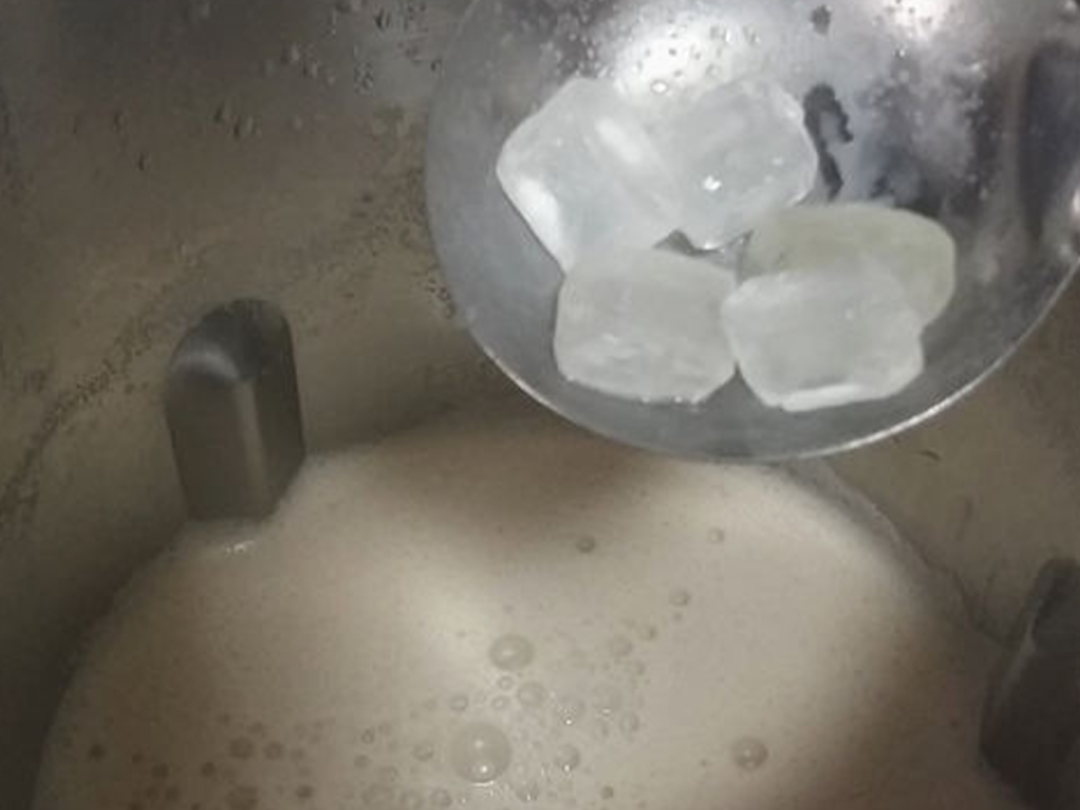 3、开锅后放入1袋牛奶,用最小火煮开锅2分钟,然后放入冰糖溶化即可;