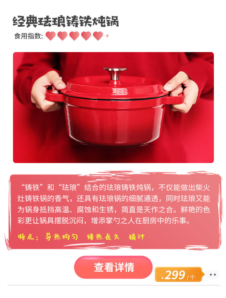 本周有: 热干面、杏鲍菇花蛤、青川木耳、荔浦芋头、酸枣仁百合膏、珐琅铸铁炖锅