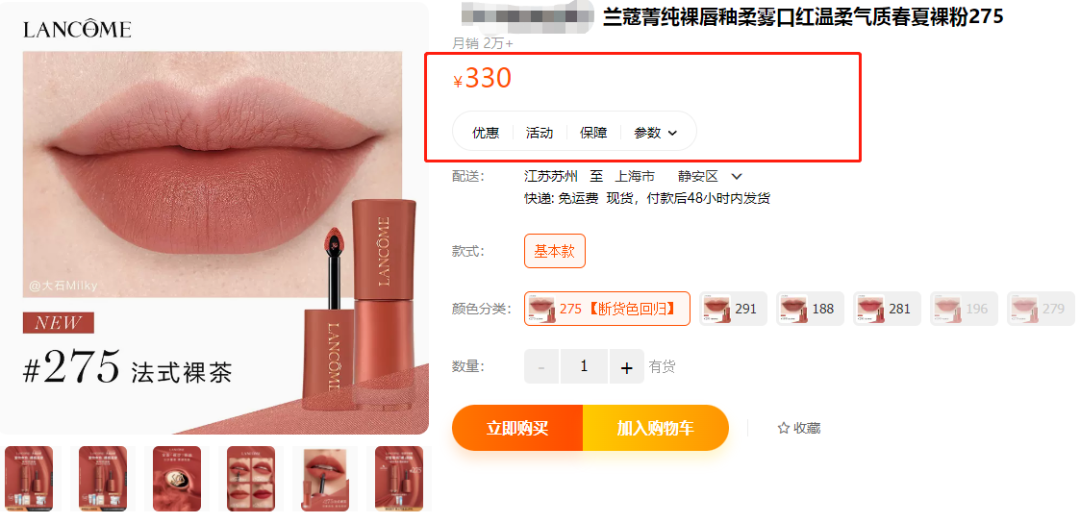 买过的姐妹都知道,兰蔻官方旗舰店一支兰蔻菁纯裸唇釉就要330元!