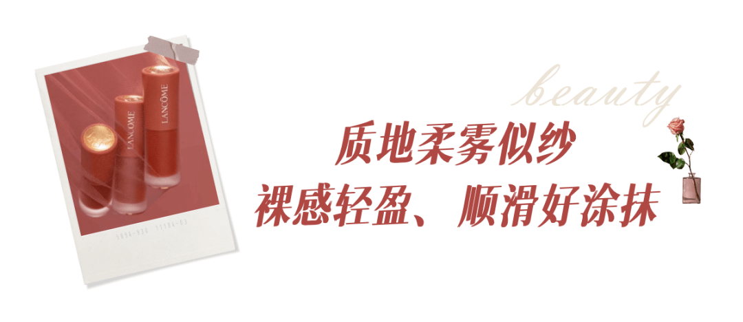 兰蔻唇釉的质地很轻盈,柔雾似纱,顺滑好涂抹,而且不显唇纹!