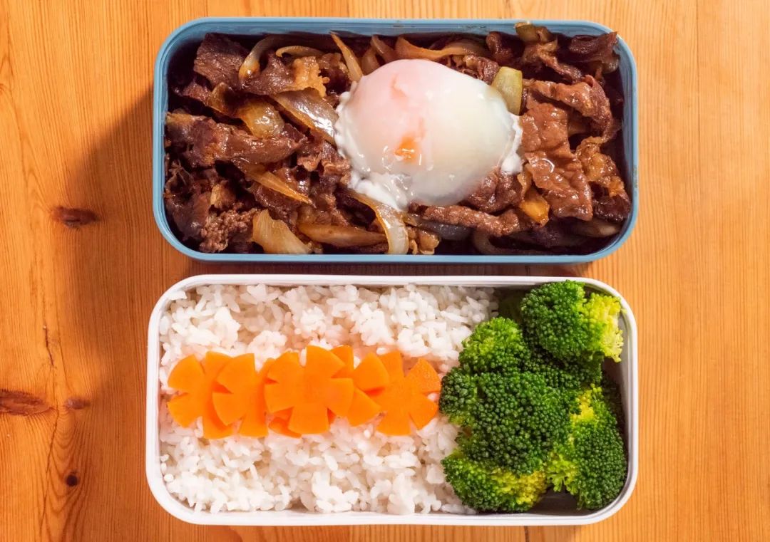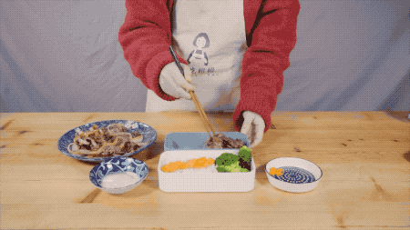 只要提前一天把酱汁调好、温泉蛋备上,第二天一早随手一炒,不出几分钟就能做出一份日式便当。