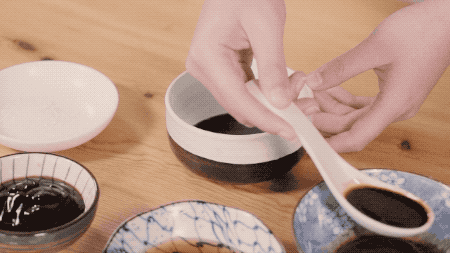 ▼ 3.调制酱汁:生抽、料酒、蚝油和白糖扮成酱汁。