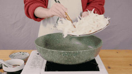 倒入焯水过的肥牛片,翻炒均匀后淋入酱汁。