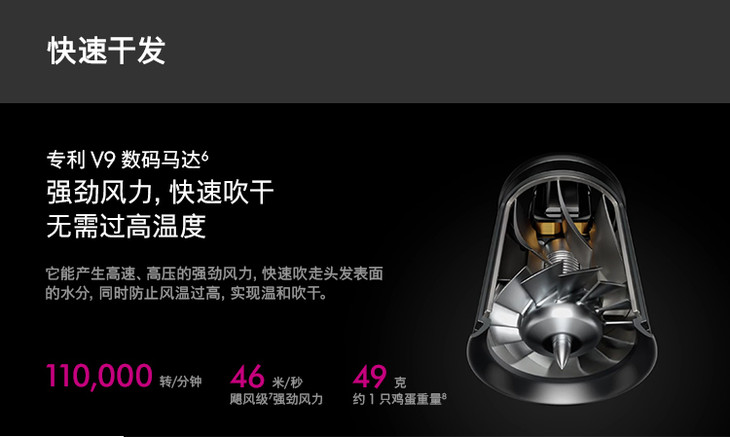 一台好的吹风机,弄干头发不是靠发热片产生的热风,把头发上头皮上的水分烘干;而应该是靠高速转动的风扇叶片产生的风,把头发上的水分吹走。