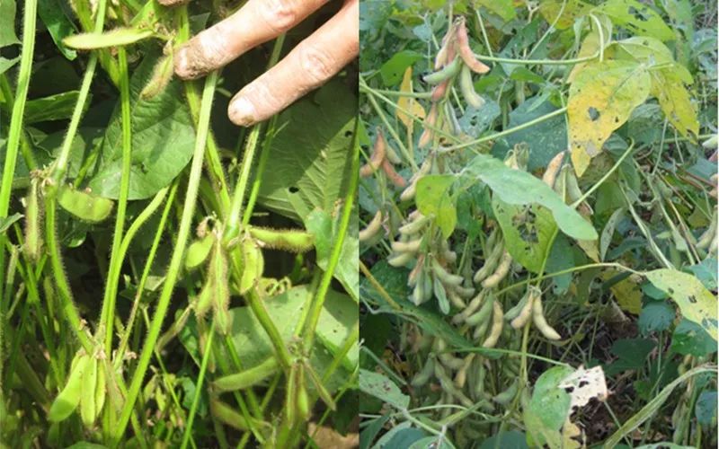 黄豆地杂草与虫孔共在