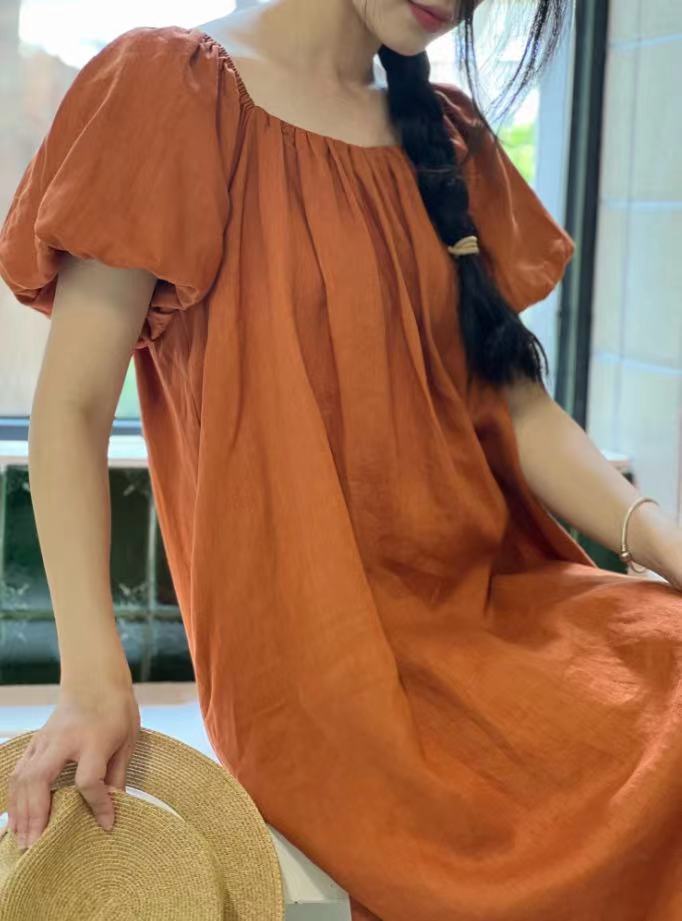 亚麻双U领连衣裙