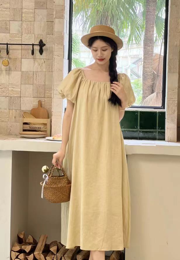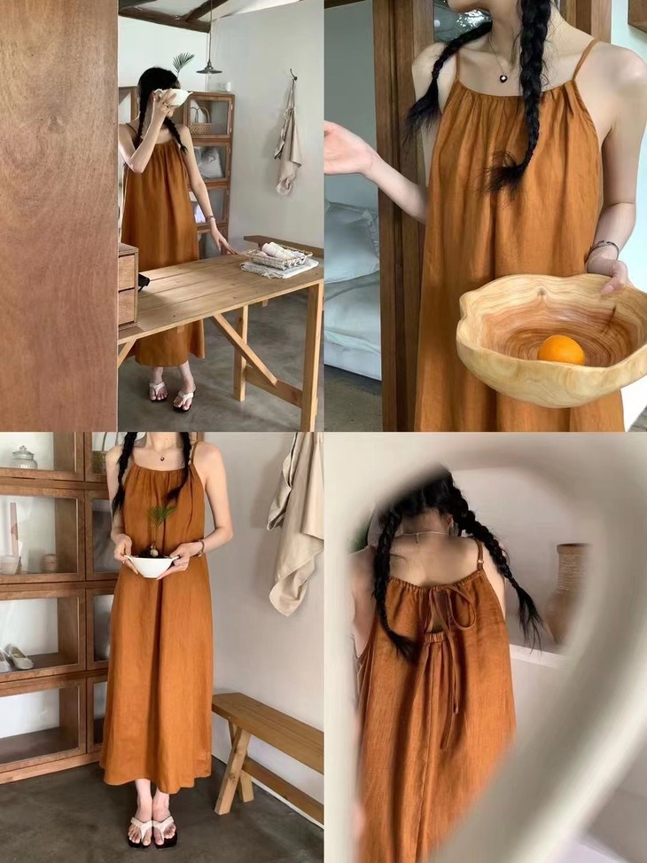 自然-亚麻吊带连衣裙