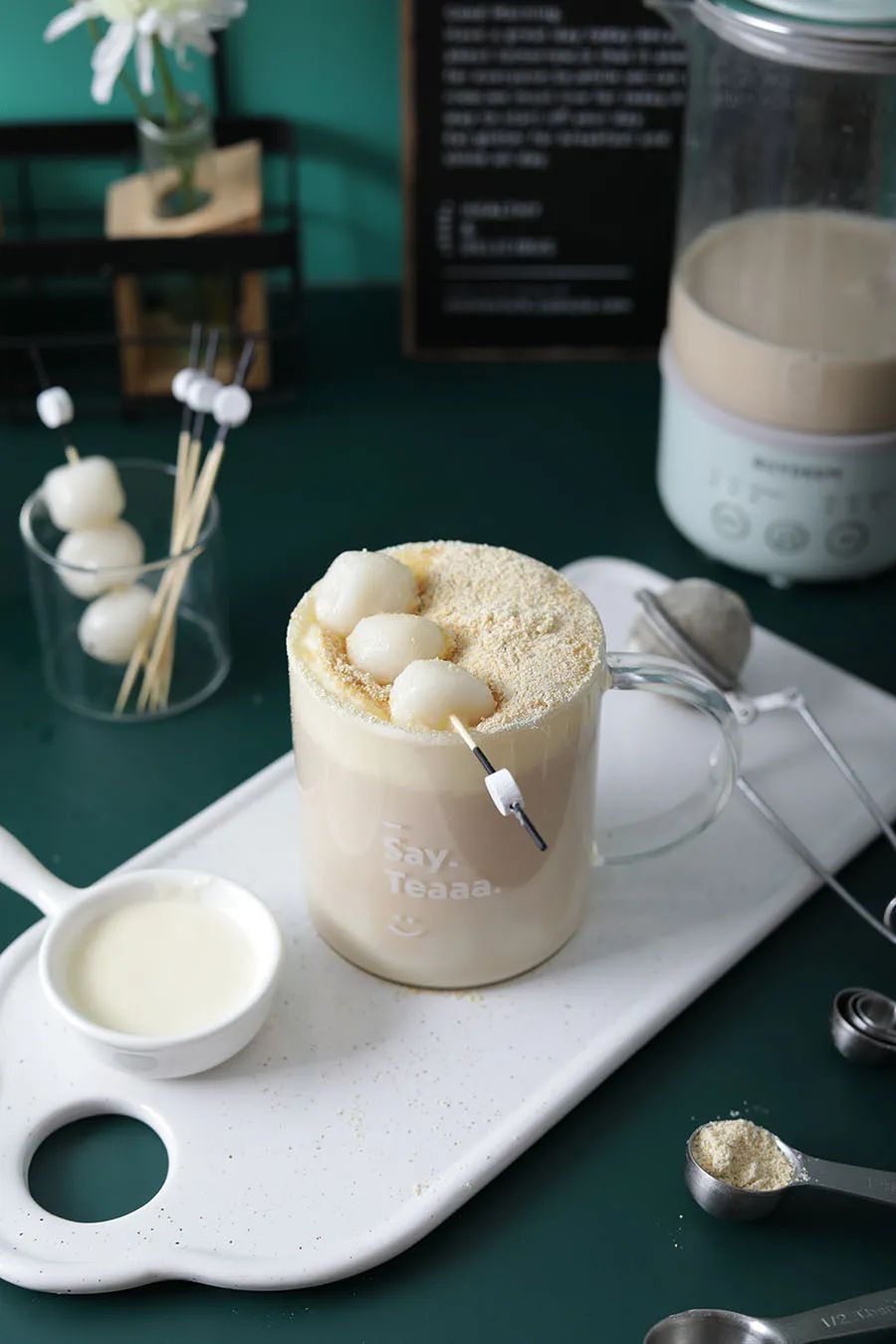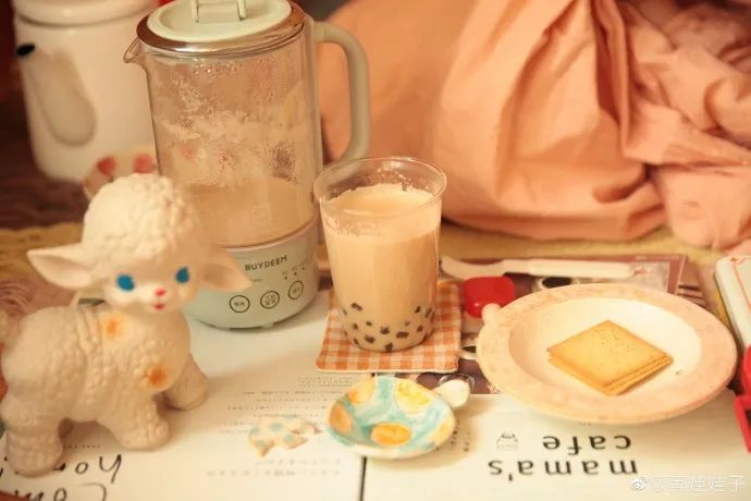 又或者煮一壶奶茶,浇上自制的豆乳奶盖,就做成了一碗价值33元的豆乳波波茶,跟迷你壶合个影,比网红店还美~