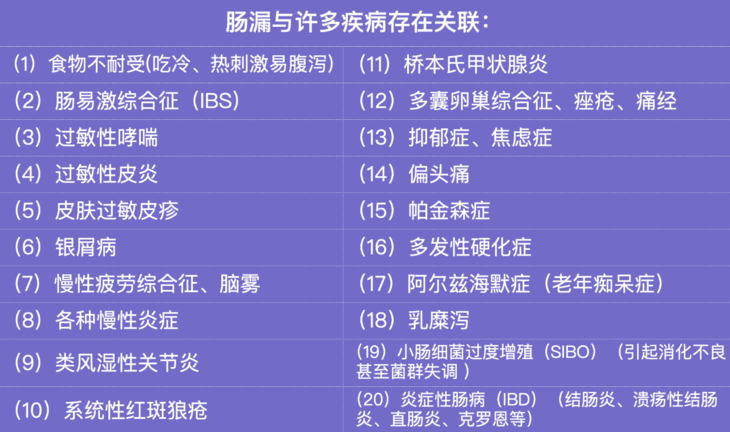 肠漏其实是我一直在强调的问题。造成肠漏的原因有很多,如麸质过敏、肠道感染、长期慢性压力、肠道菌群缺乏、胃酸、消化酶不足等等。
