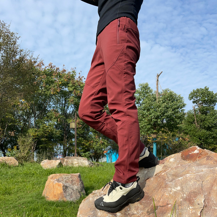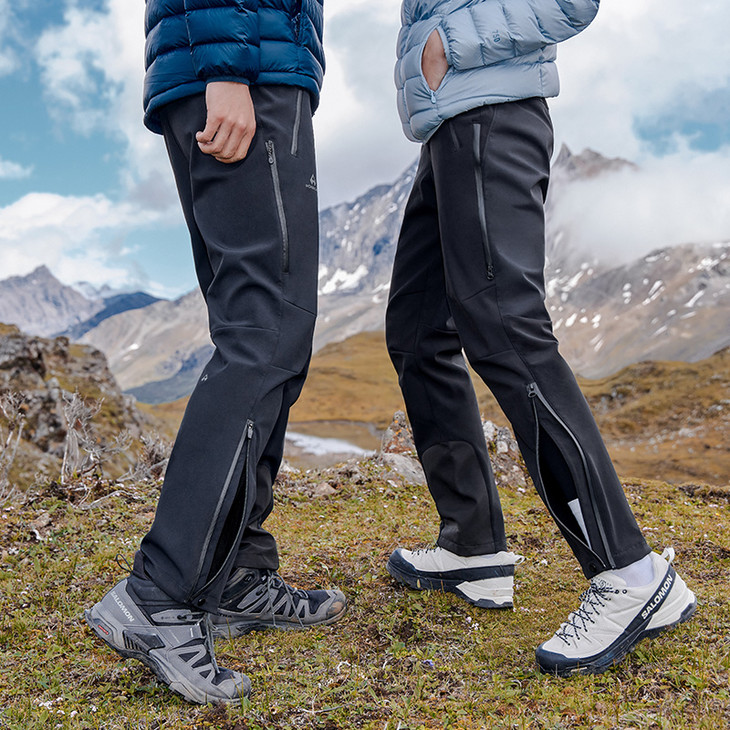 ● 70D考杜拉四面弹+DWR防泼水+暖绒内层,保暖透湿耐磨!大腿外侧采用大拉链设计,拉链内拼接网布可直接开口更透气。