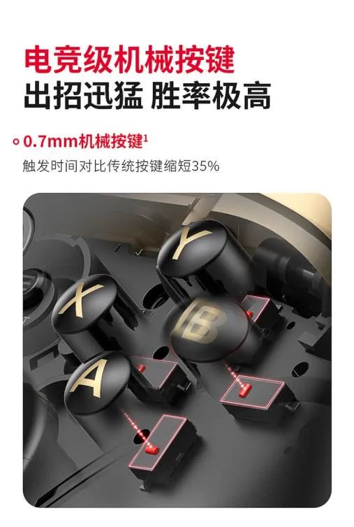 顶配硬件,实力旗舰!无论ABXY还是十字键与肩键,本次阿修罗2MAX多模游戏手柄黑金套装版都升级到了机械按键,大大缩短了按键行程,瞬发出招就是快人一步!同时,机械按键还意味着更高的使用寿命和更清脆的按压手感。用了就回不去的好手感,玩家们都该试一次的专业电竞级体验!