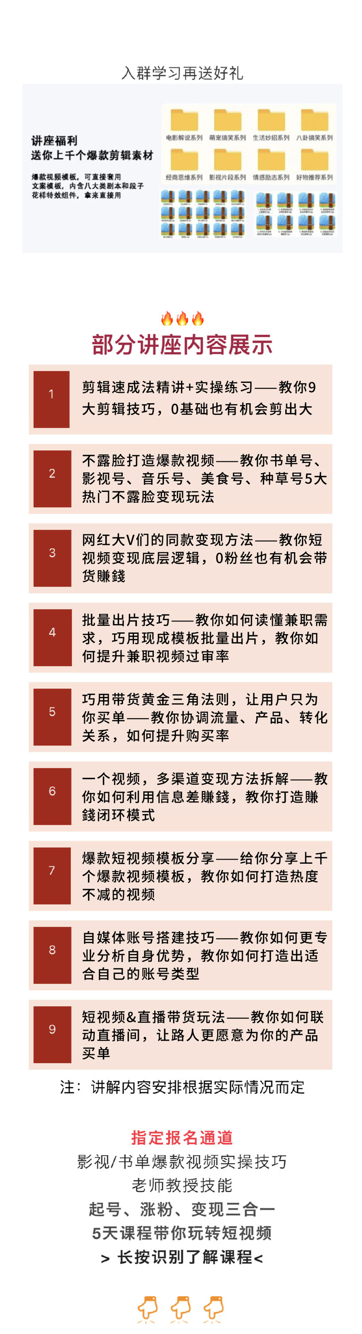 经过多年的实践,课程已摒弃复杂的理论知识,注重实操教学,并且将短视频賺錢的通用底层逻辑公式化,直接复制即可,即使是毫无经验的新手学起来也毫不费力。
