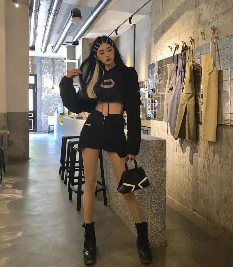 拉链脱下一半穿显得又酷又飒。