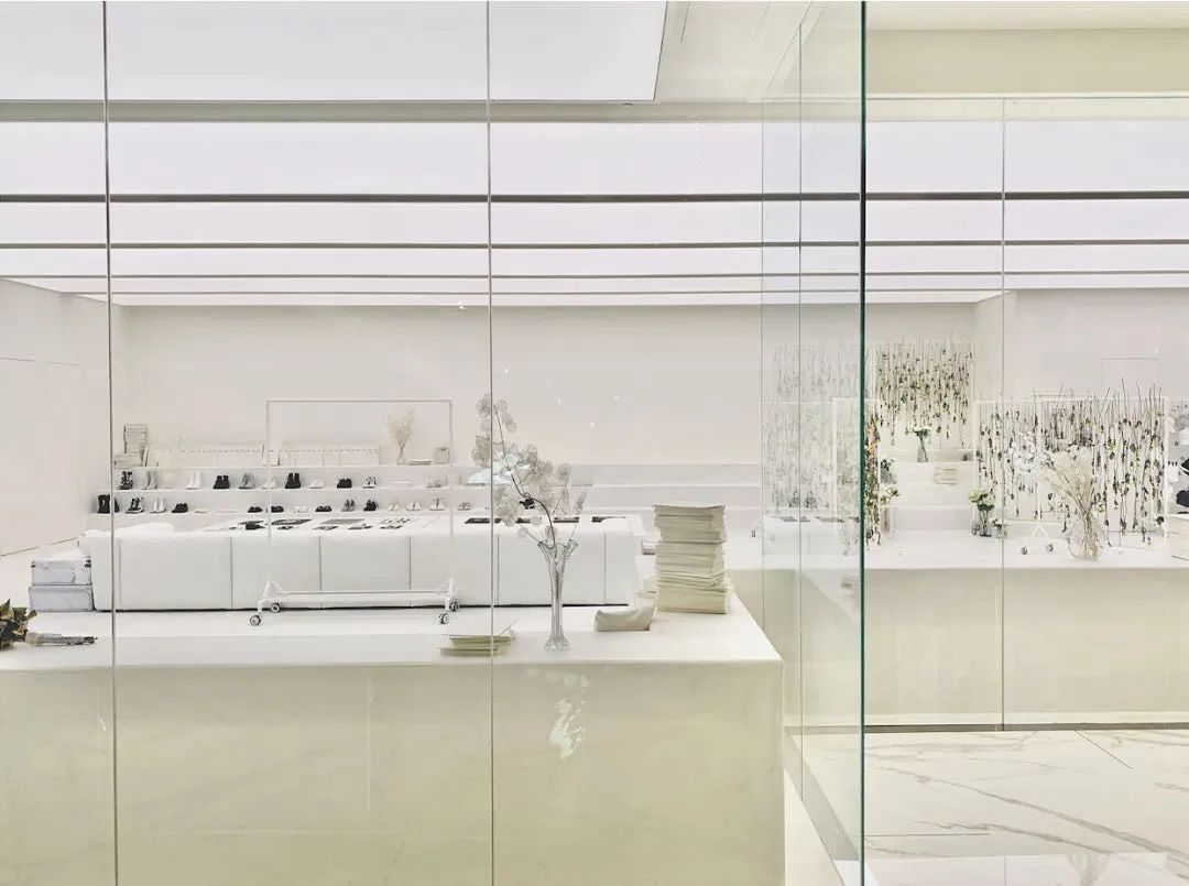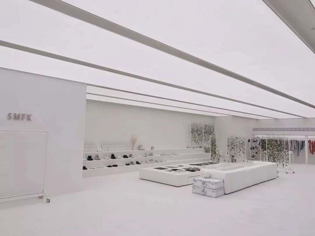 SMFK的首家线下精品店铺,在设计上也延续了SMFK的极简未完成风格,在展示空间一体化的同时,弱化了时间的存在。