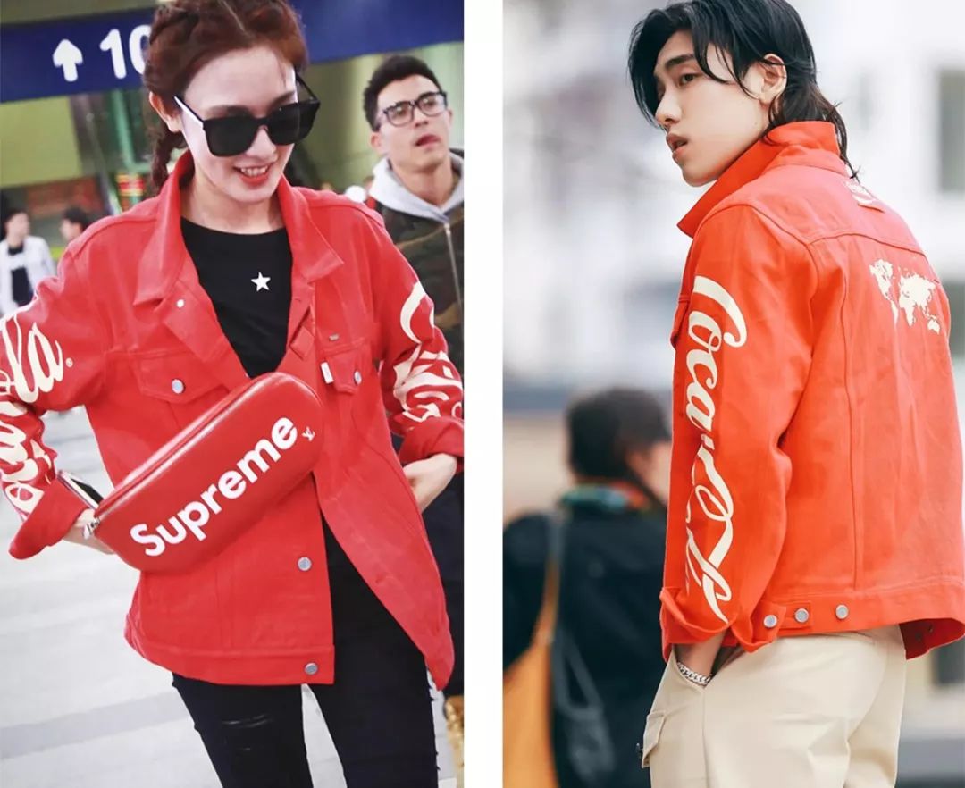 这件Coca Cola合作款的大红外套彭小苒在穿,王子异也在穿~~