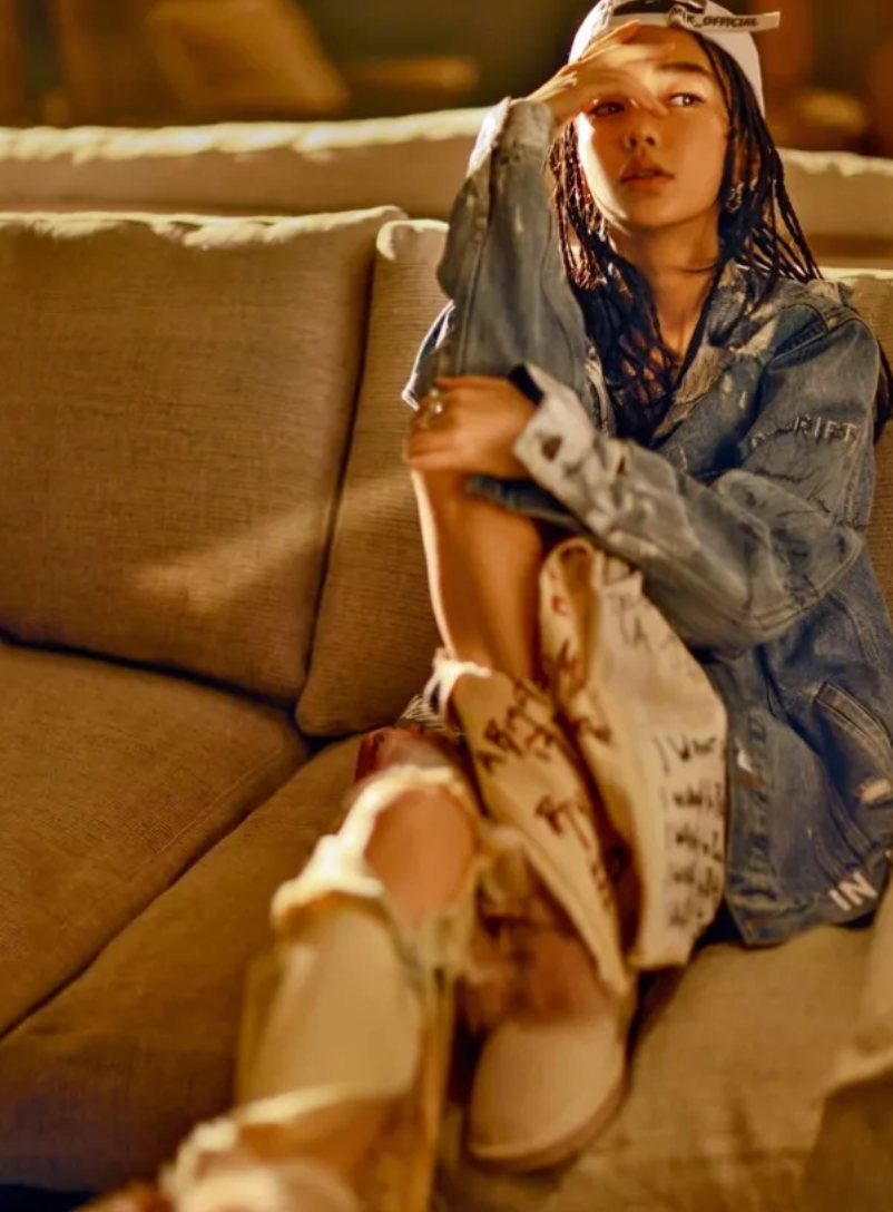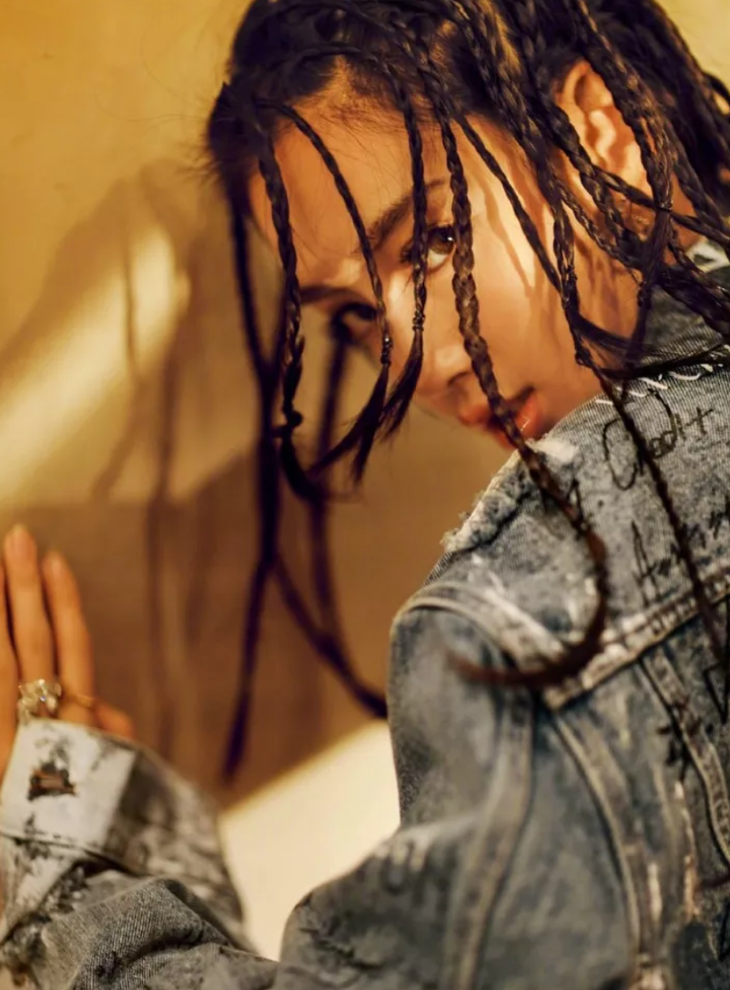 Angelababy登上COSMO10月刊,以嘻哈为基调的风格时髦炸裂,大片中,Baby身穿国内新晋潮牌SMFK涂鸦牛仔外套酷帅十足。