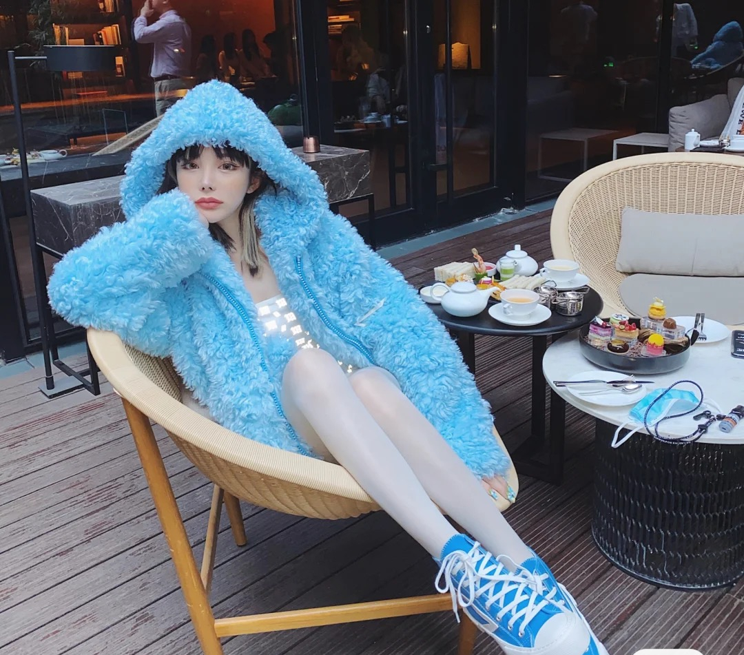 秋冬就是要穿的毛茸茸的可爱啊!版型宽松是完全不挑身材的一款,搭配运动裤休闲,搭配SMFK家的袜子也很亮眼。