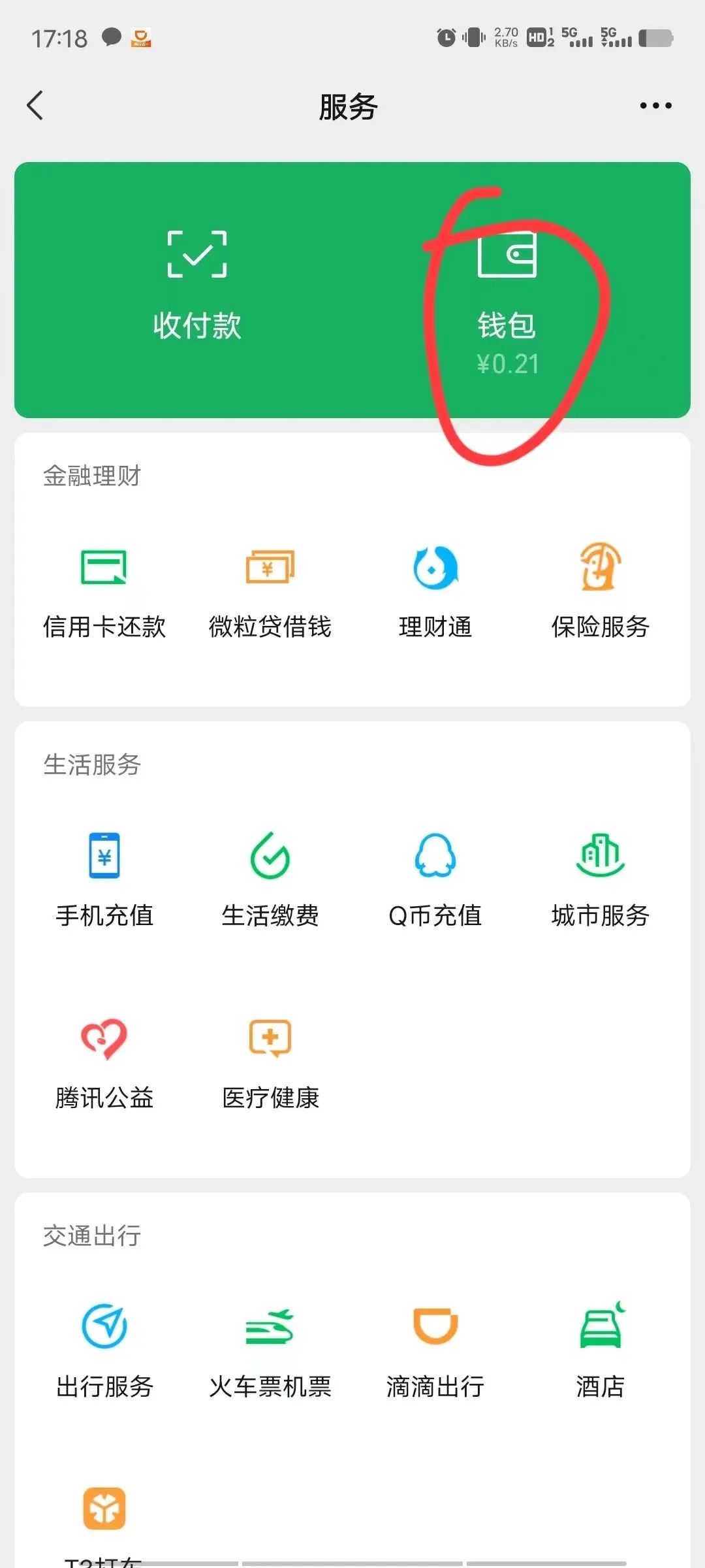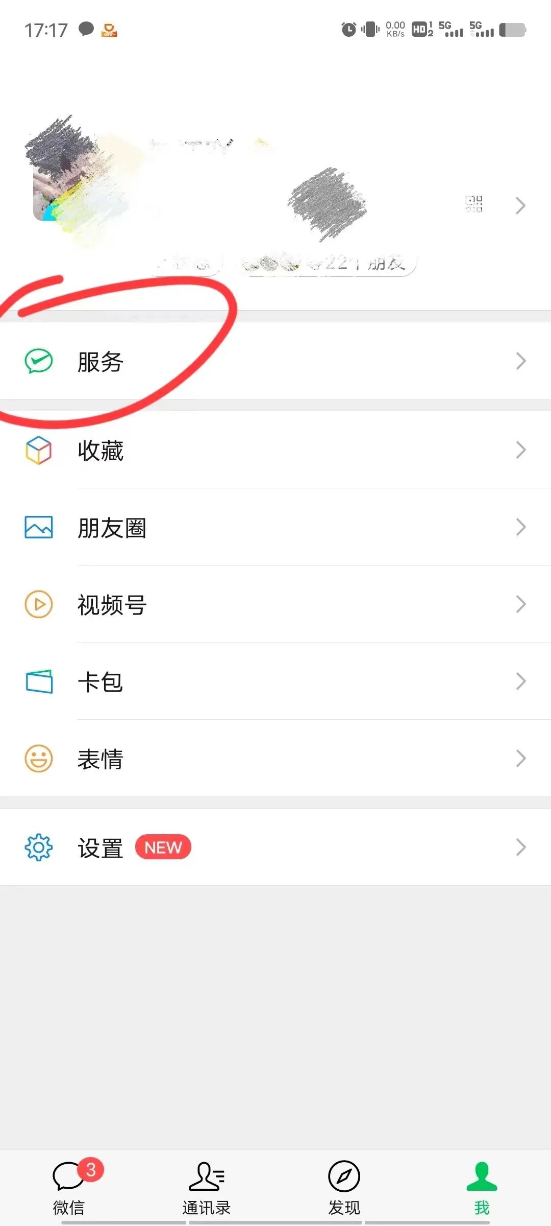 点击微信“我”,找到”服务“菜单栏,并进入 “钱包”。