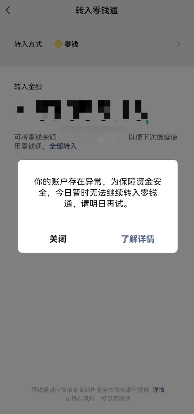 因为微信和银行的的安全限制,微信的零钱和银行卡的单日大额支付都做了 5 万元的限制。