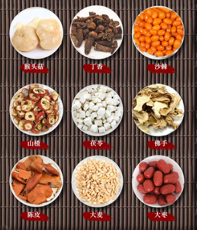 除此之外,山楂、橘皮、大麦、佛手、大枣、茯苓也都是健胃养胃的珍贵草本,放到一起,简直是“胃病克星”。