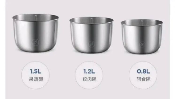 贴心配备三个不锈钢碗,分别是0.8升/1.2升/1.5升,套娃智慧收纳空间,轻松方便。
