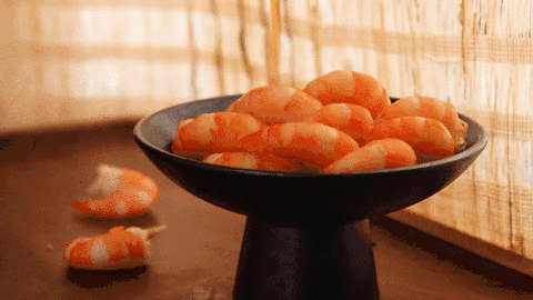 刚出锅的虾虾子立刻投入冰水中冷萃,保障了虾肉的紧实Q弹。