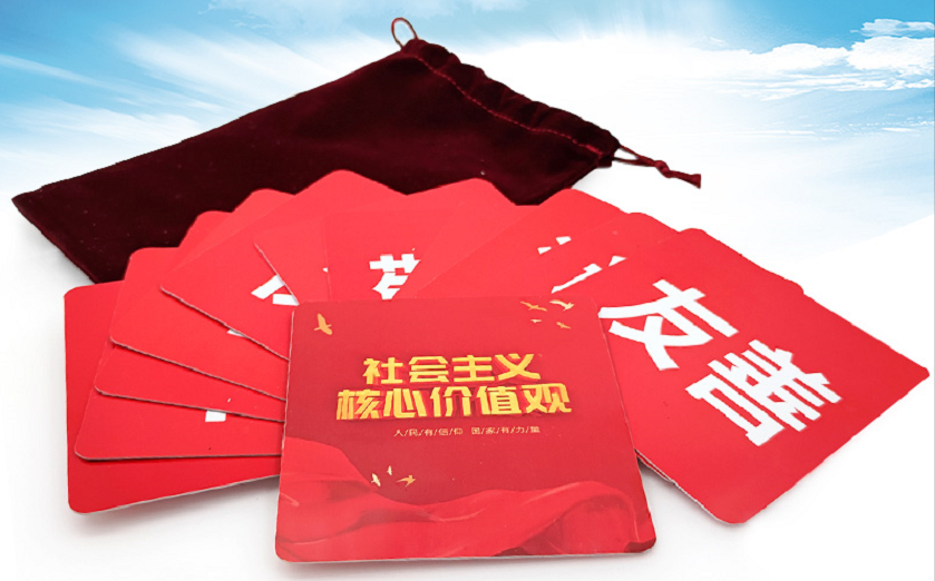3.队员在翻卡的过程当中,必须按富强、民主、文明、和谐、自由、平等、公正、法治、爱国、敬业、诚信、友善依次翻开,如果翻到的是对的,说明你运气不错,正面朝上放回原位;