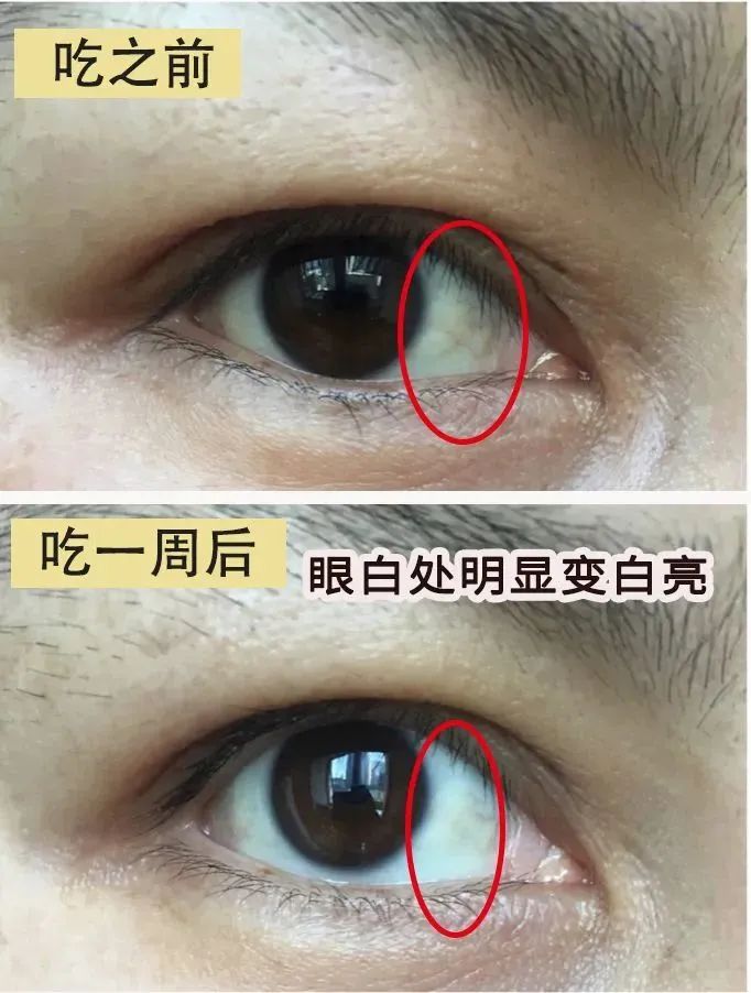 小姐妹的爸爸,因为上年纪眼睛老化,有视物不清、眼睛疲倦等表现,吃了一段时间了,也说眼睛特别舒服,还能看到眼白明显变白亮了。