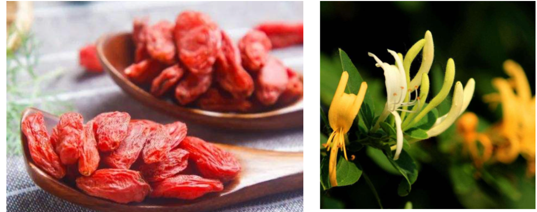 金丝皇菊+红枸杞:两者可以说是养眼的“黄金搭档”了。金丝皇菊性微寒,归肝、心经,能泻火平肝明眸;枸杞子归肝、肾经,《本草述》记载其“疗肝风血虚,眼赤痛痒昏翳”。