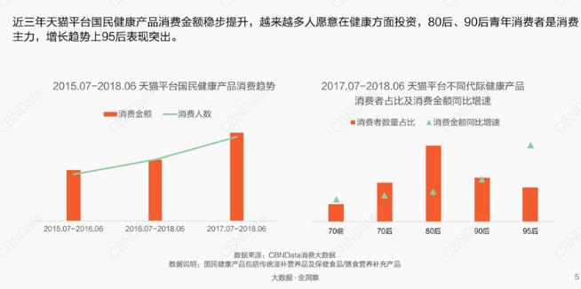 根据微热点大数据研究院《2019年度保健品行业网络关注度分析报告》,在购买保健品的人群中,90后占比达到1/4;CBNData《2018国民健康跨境消费趋势报告》也显示,80/90后是健康消费的主力军。