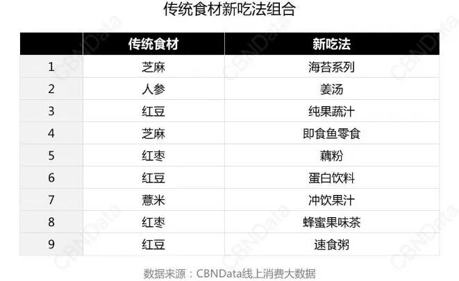 在此背景下,以往通常要熬要炖的传统养生食材,也正被吃出新花样——芝麻最“百搭”,和海苔、小鱼干在一起都不违和;红豆、薏米也被直接熬成速食粥、添进果汁……