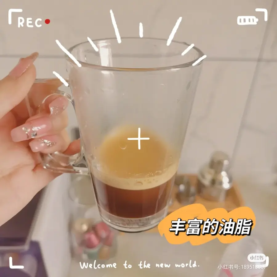 第四步,咖啡杯里倒(快看这个油脂,超满意的,整个屋里都是咖啡的香气)
