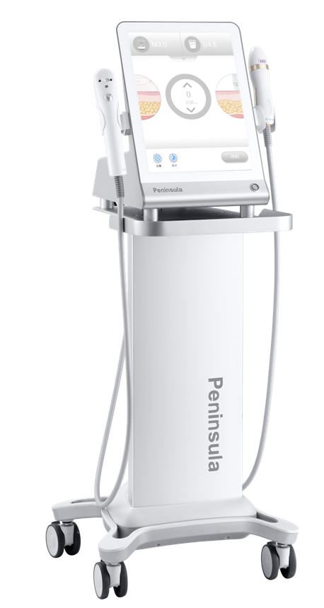 4.5mm筋膜提拉——直达SMAS筋膜层,悬吊提升下垂皮肤软组织,用以改善苹果肌下垂、法令纹、口角囊袋、下颌线模糊等。