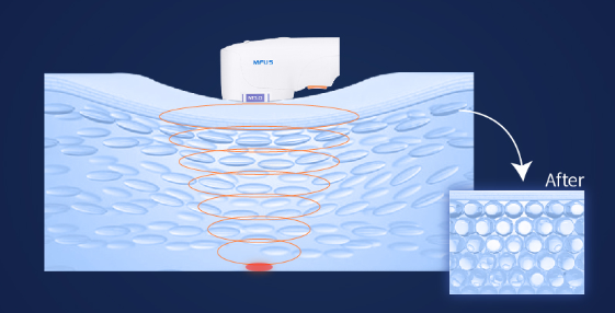 3.0mm紧致轮廓——直达皮下浅筋膜层,紧致皮肤并有选择性的减少脂肪细胞,从而收紧面部轮廓、改善下颌缘模糊、嘟嘟肉等。