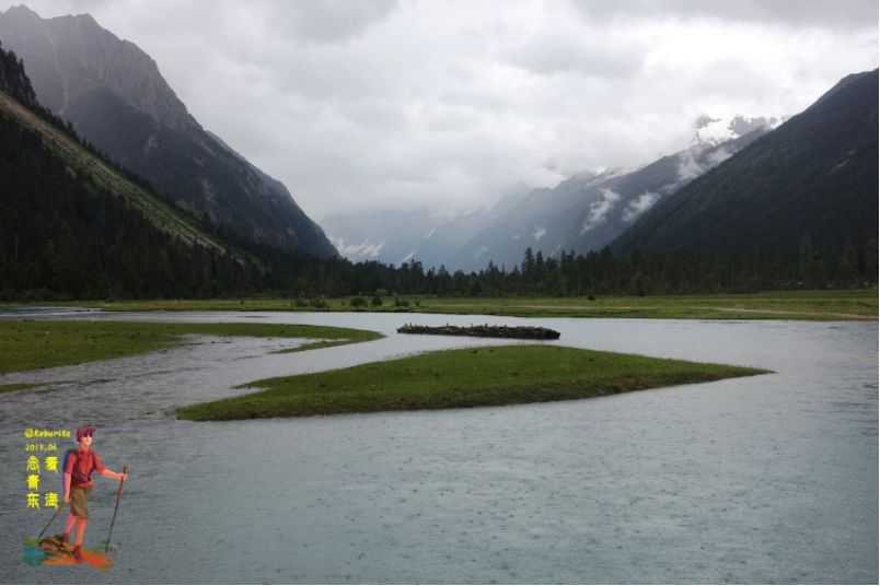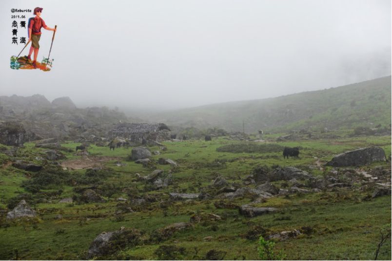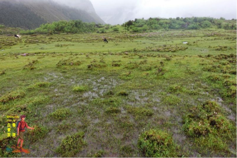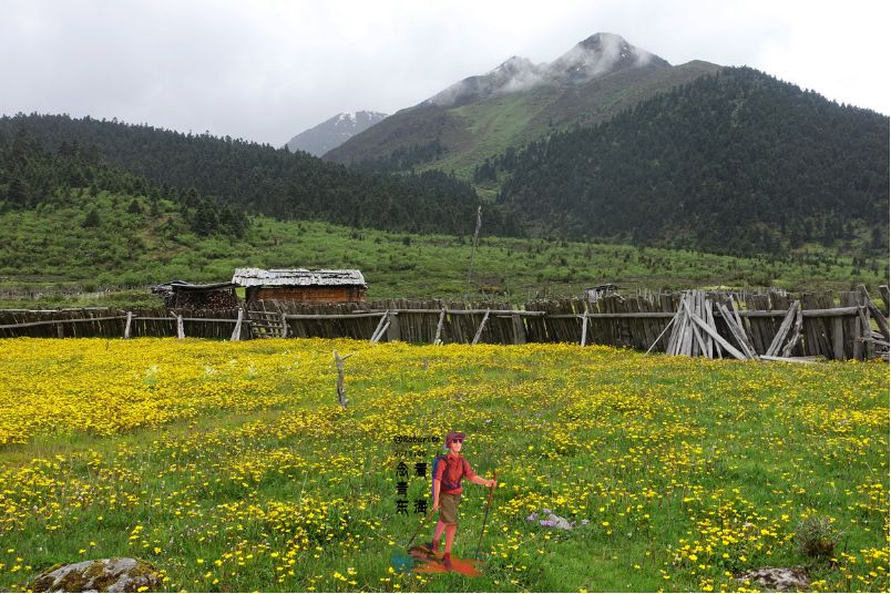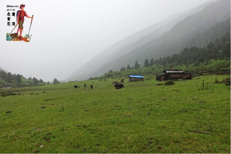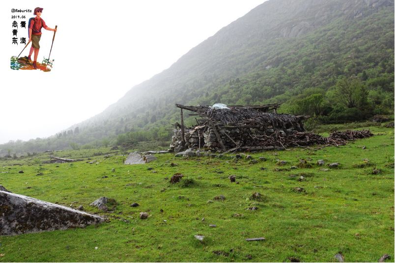 18:43冒雨到达达日措东面一小木屋处住宿,海拔4290米。多雨的季节,在山里有不漏雨的小木屋住实在是幸福。