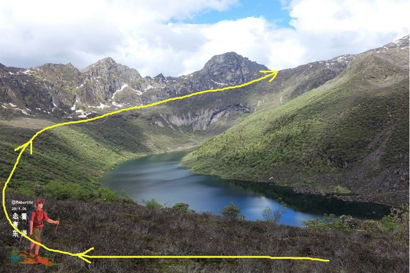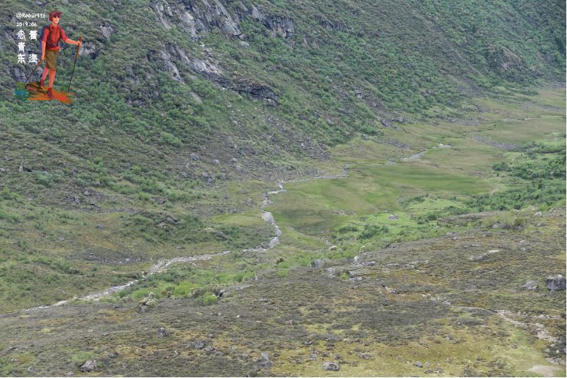 朝着黑力措下行。这个湖在晴天时的色彩应该会比较好看。