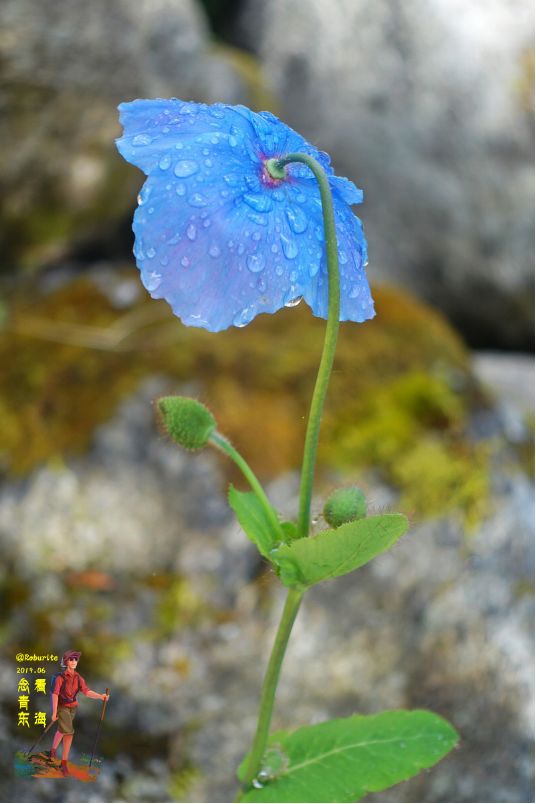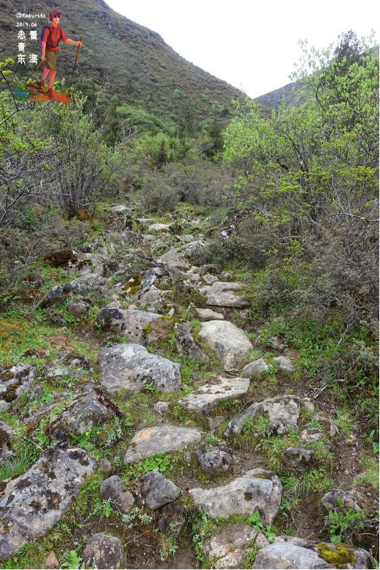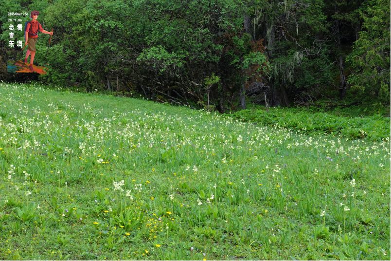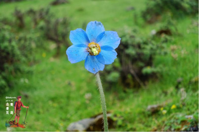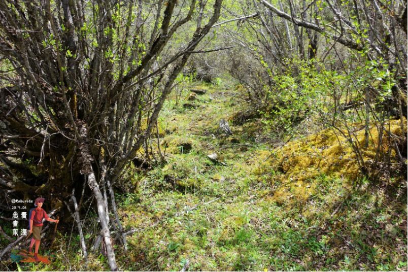 这一段路主要是在坡地上的树丛中穿行,主角是绿绒蒿,绝大部分都是蓝色或黄色的,偶尔有一两株淡紫色的品种。