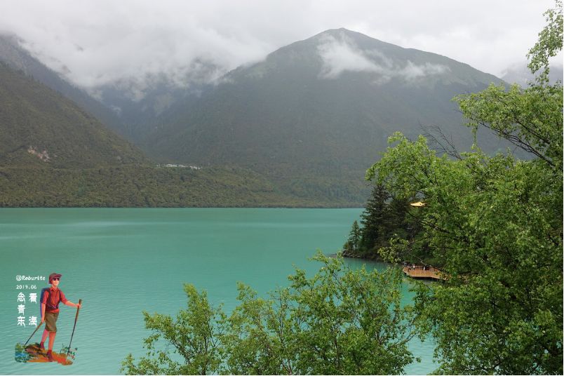 运气不错,在桑通牧场碰到了一个商业旅行团,等他们的大部队从新措徒步回来,就坐他们的车返回了林芝市区。中途到巴松措时顺便逛了下湖心岛。湖水呈碧绿色,可惜天气不佳。