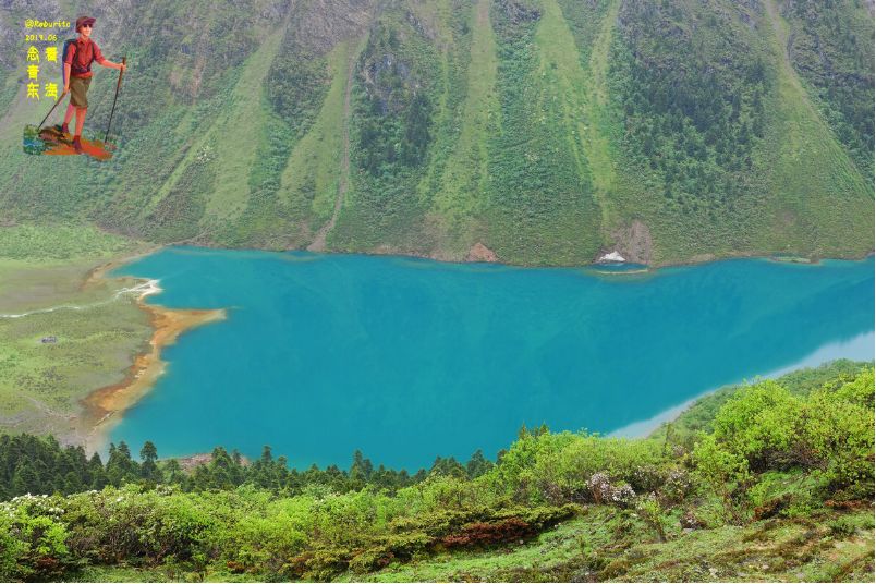 天气不给力,海子是墨绿色的,有时候看起来甚至是灰黑色,即便是有杜鹃花的映衬,景色也比较平淡。